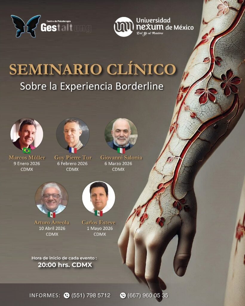 El Centro de Psicoterapia Gestaltung en colaboración con la Universidad Nexum de México, extendemos la invitación a asistir al Seminario Clínico Sobre la Experiencia Borderline. La experiencia borderline se mueve en el filo entre la necesidad de vínculo y el temor a la pérdida, entre la intensidad del deseo y el vacío que lo sigue. En este seminario clínico reflexionaremos juntos cómo se encarna esta experiencia en el encuentro terapéutico y qué nos revela sobre los límites de lo humano. La vida emocional en alta velocidad y la exigencia de estabilidad: El drama de las personas […]